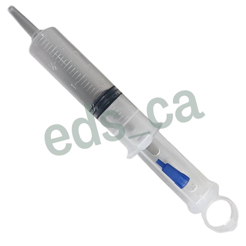Una jeringa “Tomy” se refiere comúnmente a una jeringa de tipo Toomey, un instrumento médico de gran capacidad que se utiliza para la irrigación y aspiración de fluidos en procedimientos médicos y quirúrgicos. No se usa para inyecciones o para tomar muestras de sangre, sino para la transferencia de grandes volúmenes de líquido.