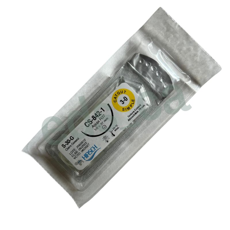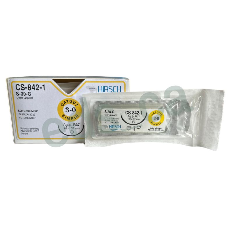 Sutura Catgut Simple 3/0 con Aguja Cónica de ½ o R37 mm Absorbible de 70 cm Estéril Equiv = 842T - HIRSCH cantidad