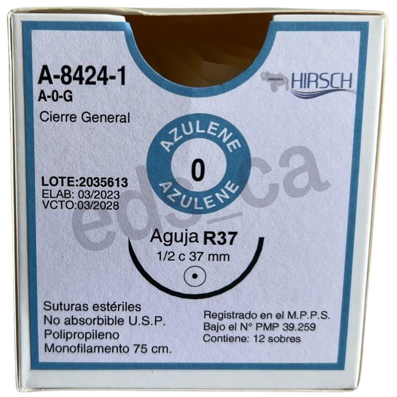 Sutura Prolene 0 AZULENE Aguja Curva 37 mm o ½ c No Absorbible 75 cm Equivalente = 8424T – HIRSCH
