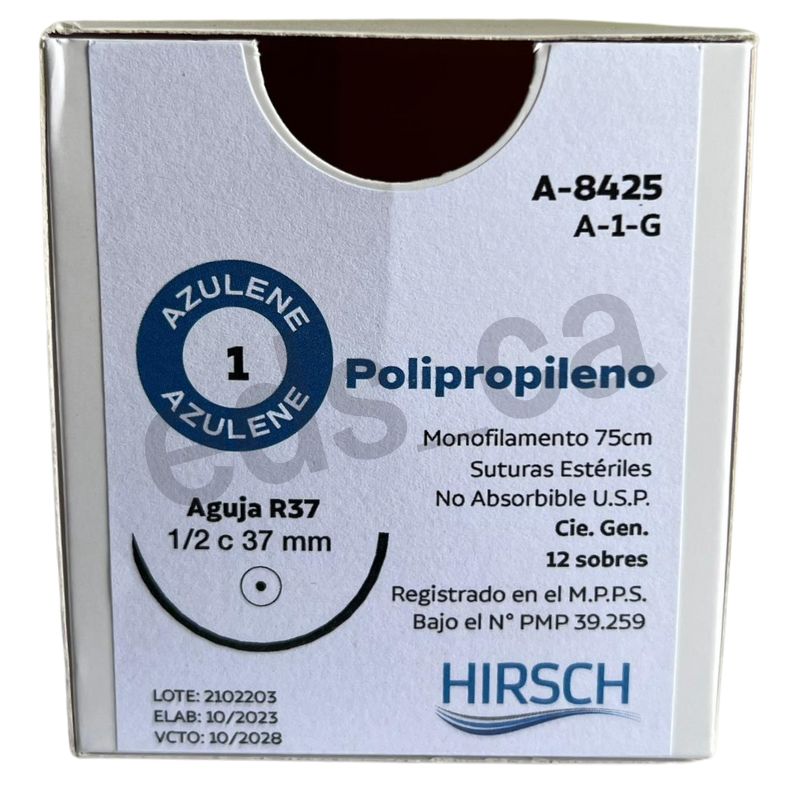 Sutura Prolene 1 AZULENE Aguja Curva 37 mm o ½ c No Absorbible 75 cm Equivalente = 8425T – HIRSCH