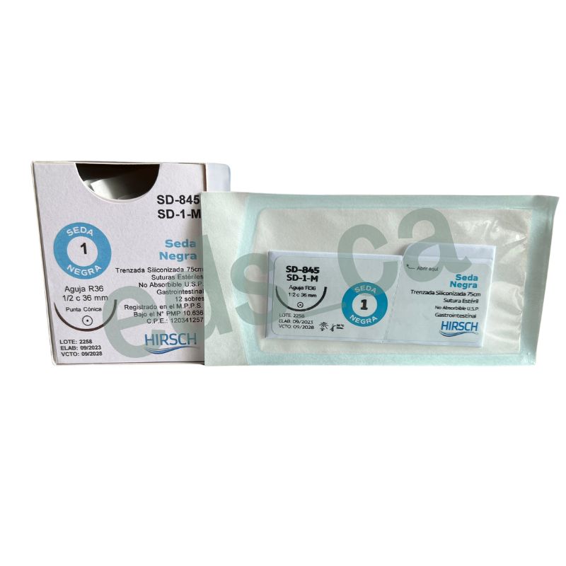 Comercializadora EDS, C.A. Productos Sutura SEDA NEGRA 1 Aguja Curva ½ o 36 mm Cónica No Absorbible 75 cm Gastrointestinal Equiv = K845H – HIRSCH
