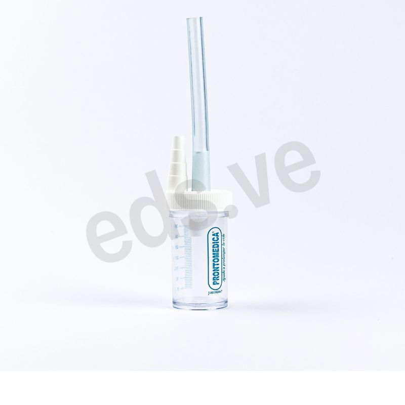 - Diseño: Frasco transparente y estéril con una tapa que posee dos conexiones: una para la sonda de aspiración y otra para el sistema de vacío.